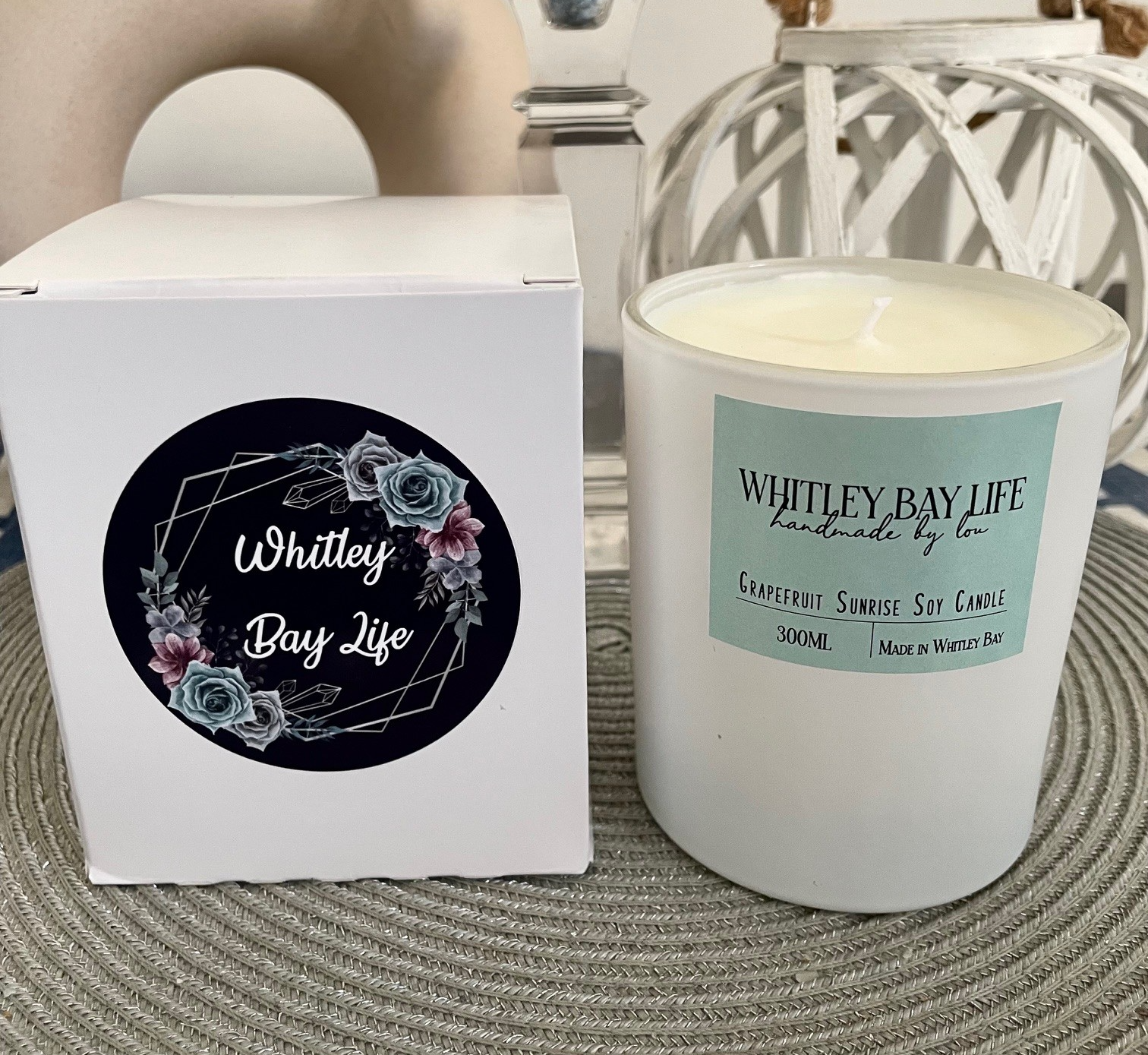 Gorgeous Juicy & Fresh Grapefruit Sunrise Soy Vegan candle! Beautiful top notes of Grapefruit, Lemon Peel & Mandarin enhanced with hints of Jasmine, herbs Orange blossoms and cedar musk.